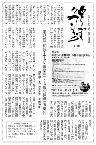 とらふすクラシック・191。 第46回 和歌山市交響楽団・市響合唱団演奏会 和歌山市民会館は、今年の秋に、和歌山城ホールとして生まれ変わります。とても楽しみなことです。1979年の完成から永きにわたり、多くのアーティストたちがステージに登り、たくさ…
